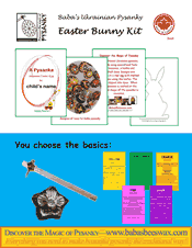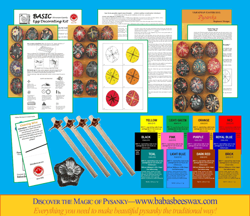 - you get our pamphlet Ukrainian Easter Egg Pysanka Beginners' Designs with instructions, 45 sample designs, coloured diagrams, helpful hints, and