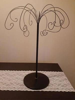 for curbside pick-up only; large 24" black metal hanging pysanky stand; very sturdy, heavy base to prevent toppling; strands are pliable for your own preference; includes